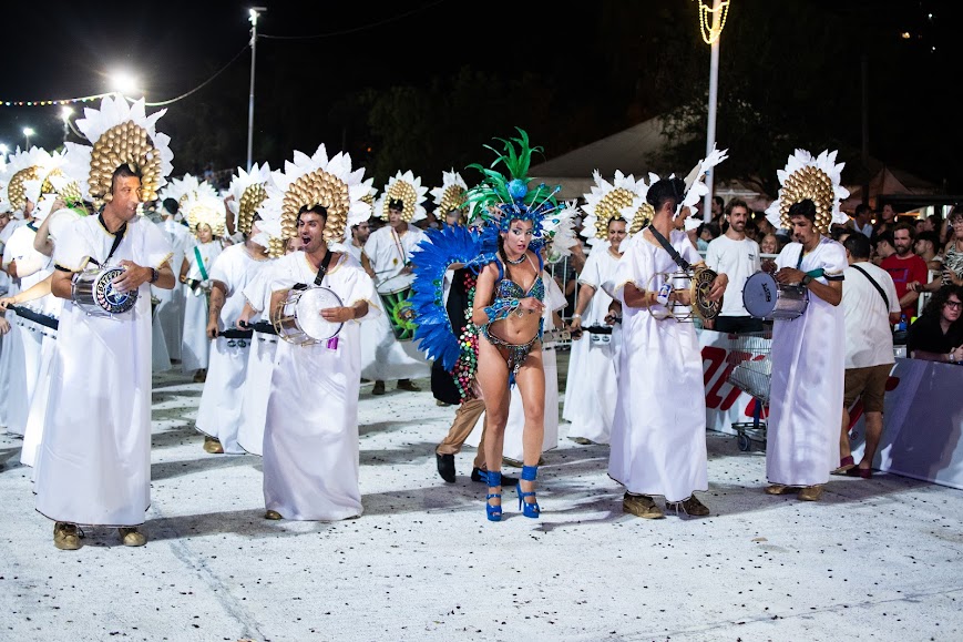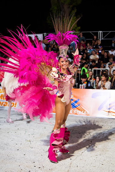 La representante departamental vigente, Melanie Hereñú, acompañó a las candidatas al título 2026: Nicole Deusich, Melanie Gerdau y Luján Juárez. A lo largo del desfile, Obrigado Batería, Los Reyes del Samba, Noche de Reinas, Jarana, La Fábrica de Pasistas y El Batuque desplegaron ritmo, color y alegría ante el público presente.