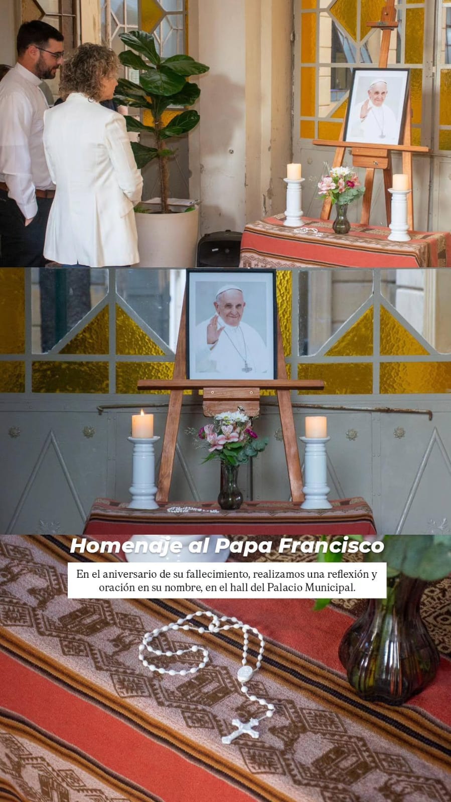 Hoy se compartió un momento de reflexión y bendición en el hall del Palacio Municipal, por motivo del aniversario del fallecimiento del Papa Francisco.