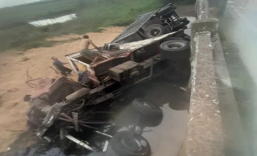 Impresionante choque entre un camión y una cosechadora sobre un puente en la ruta 11