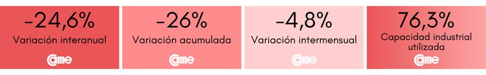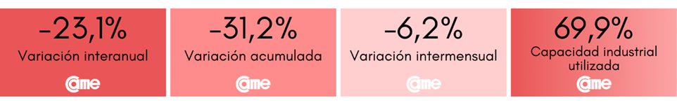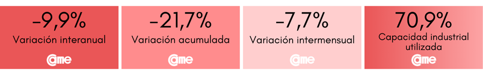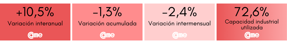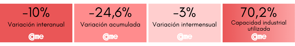 Estos resultados surgen del Índice de Producción Industrial Pyme (IPIP) que elabora CAME, con una muestra que alcanzó a 413 industrias pymes a nivel federal.
