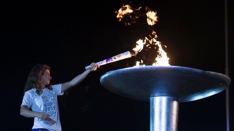 La regatista rosarina Cecilia Carranza Saroli, medallista olímpica en Río 2016, fue la encargada de encender la antorcha que simboliza la competencia, que cuenta con 2.000 atletas de 14 países (159 de Argentina y 19 de la provincia de Santa Fe), que intervienen en 12 disciplinas en tres escenarios deportivos.