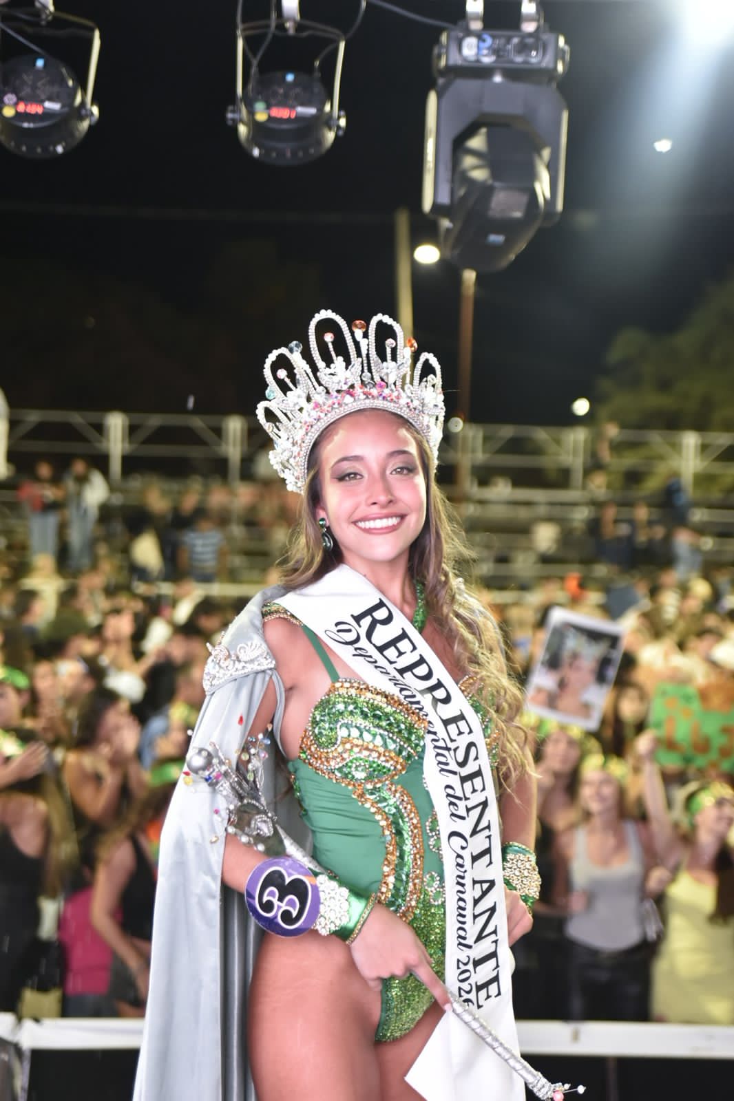 En una noche cargada de emoción y brillo, fue coronada como máxima representante del Carnaval Departamental, tras una destacada participación en la elección.