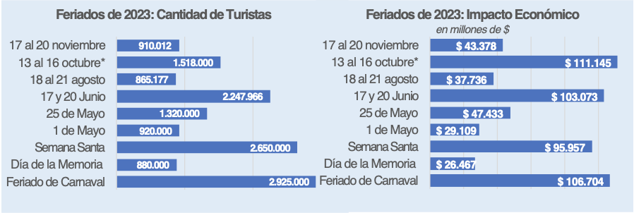 El fin de semana largo por el feriado de la Soberanía Nacional movilizó a 910 mil turistas nacionales y extranjeros por la Argentina, quienes gastaron $43.378 millones en las ciudades que forman parte del circuito turístico nacional.