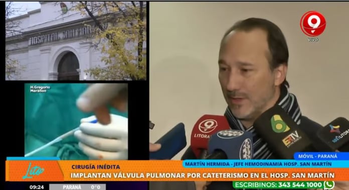 “Lo que hicimos fue un reemplazo valvular pulmonar que es una de las válvulas más importantes del corazón”, expresó Martín Hermida, Jefe de Hemodinamia del Hospital San Martín.
