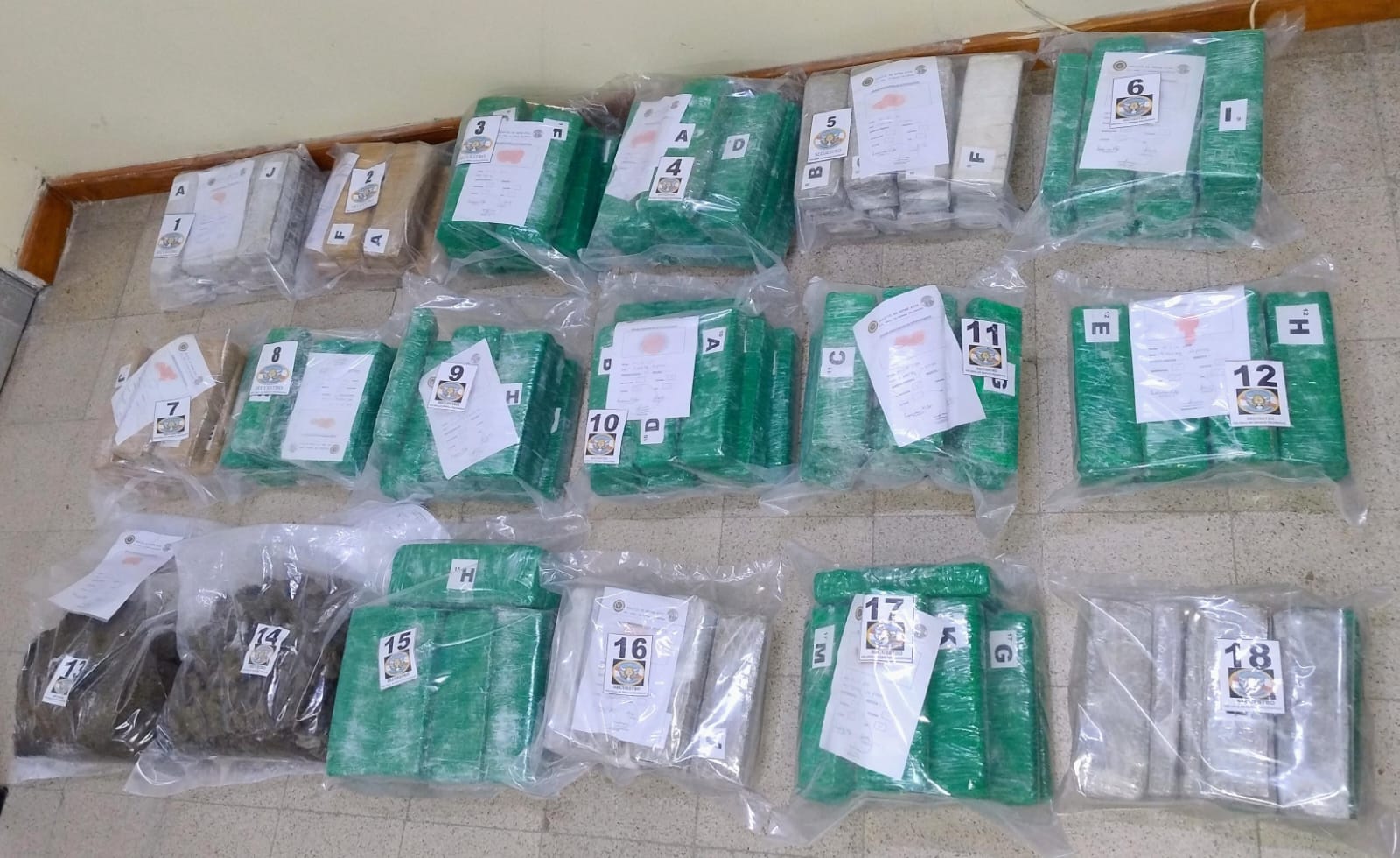 Se trata de marihuana, con un peso que ronda los 135 kilos, según el pesaje que realizó en el lugar el personal de la Dirección de Drogas Peligrosas. Los ladrillos de droga se encontraban en un total de 16 bultos rectangulares y dos circulares.