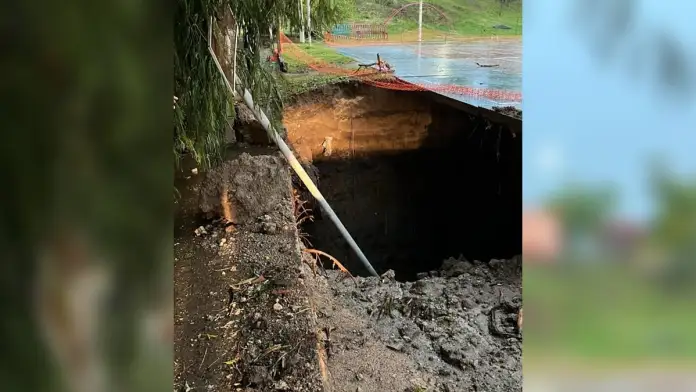 Lucas García, a cargo de Protección Civil de la Municipalidad, precisó en diálogo con Canal 9 Litoral que el fenómeno comenzó alrededor de la 1:20 con fuertes ráfagas y precipitaciones intensas. “Estamos en la zona de Gaucho Rivero, donde hoy tuvimos anegamientos en domicilios y un hundimiento mayor en el socavón, el cual generó un pozo de 10 metros de profundidad“, detalló el funcionario.